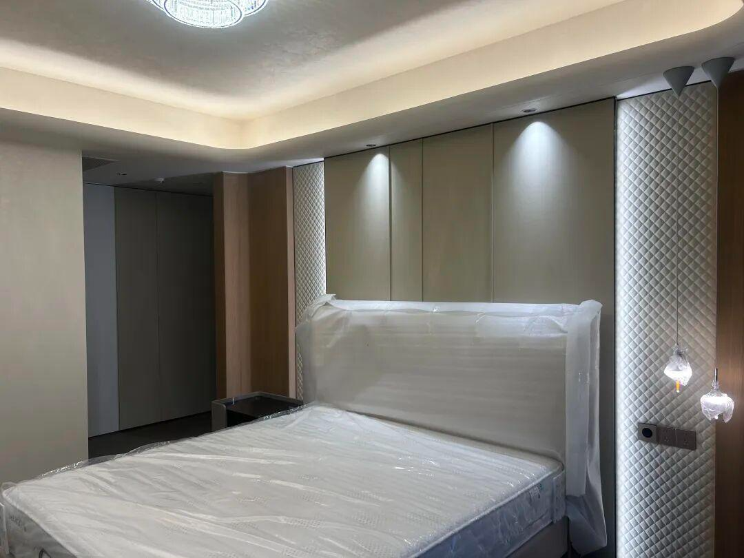 深入住宅的私域空间,卧室的治愈感便扑面而来。斯达丝绸以温柔的包裹感,为疲惫的身心筑起一处港湾。米白色墙面弱化了空间边界,细腻肌理像一层柔软的滤镜,将清晨的第一缕阳光、夜晚的床头暖光都变得柔和绵长。褪去白日的喧嚣,靠在床头,看光影在丝质墙面上缓缓移动,指尖触碰时的丝滑触感,总能让人卸下所有防备,在松弛氛围中寻得内心的安宁,这便是私域空间最本真的治愈力量。