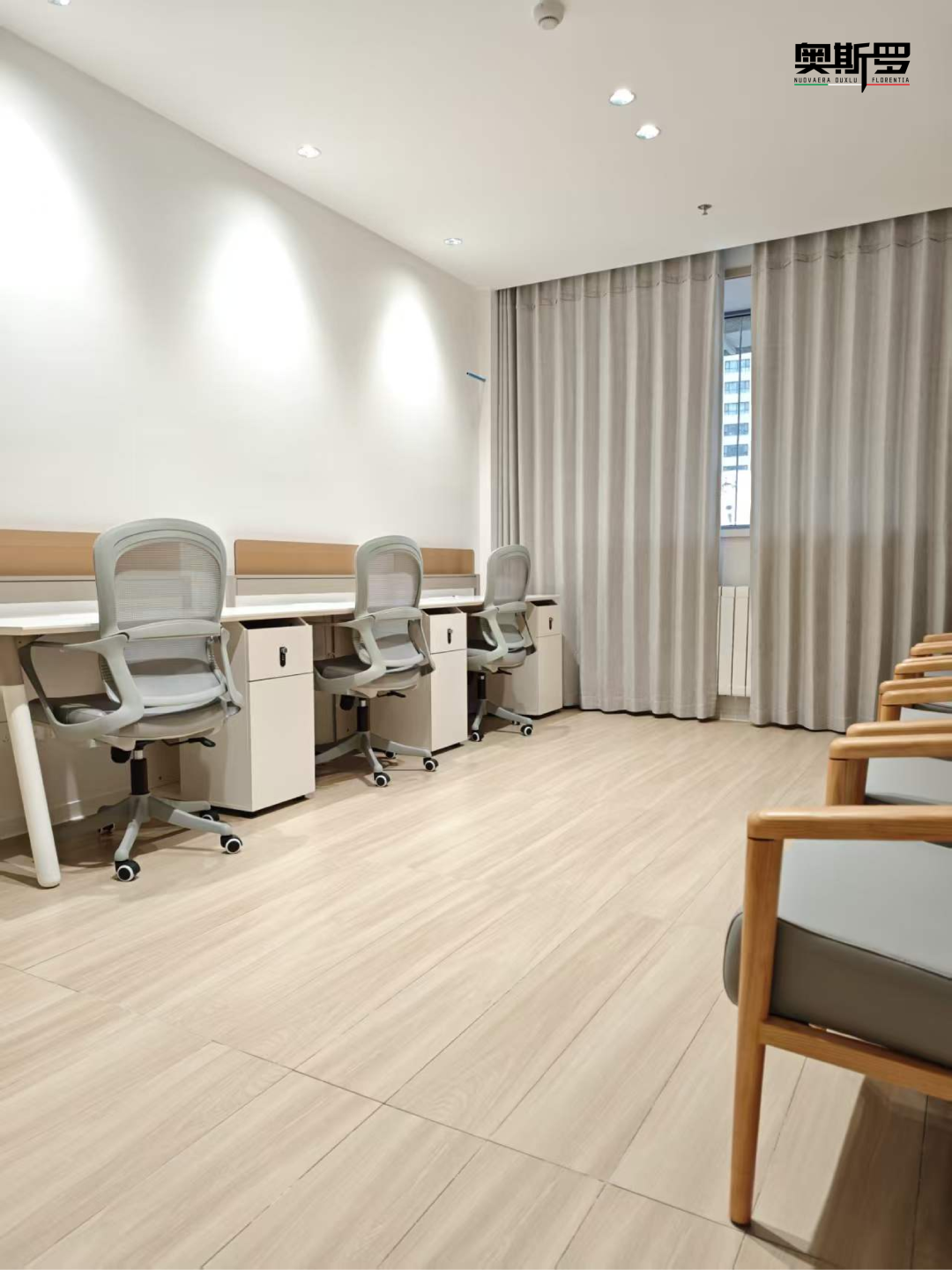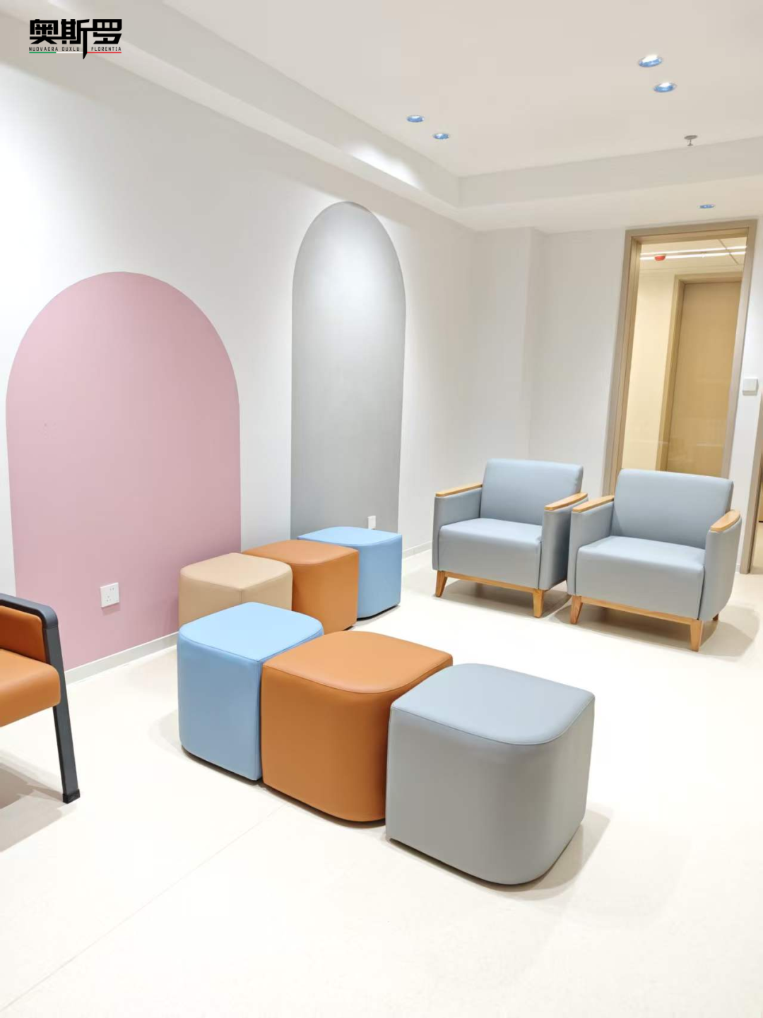 儿童候诊区:大胆采用了淡粉、浅蓝等明快色彩。这些色彩并非随意堆砌,而是经过精心调配,既能激发孩子们的活力,又不会过于喧闹。更重要的是,这些色彩来自奥斯罗的环保色浆,完全不用担心有害物质的挥发。