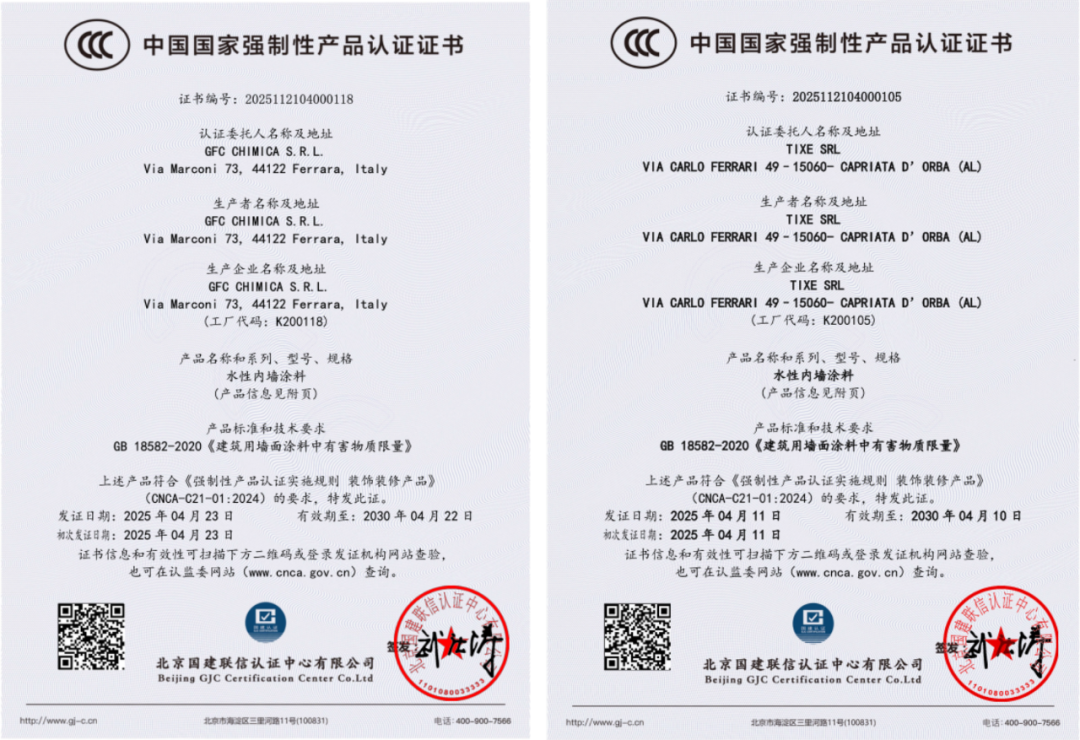TIXE(泰科斯)和OUXLU(贵族系列)是两大独立的意大利高端涂料品牌,分别由位于意大利不同城市的自有工厂(TIXE SRL与GFC CHIMICA S.R.L.)研发生产,产品线各有侧重。