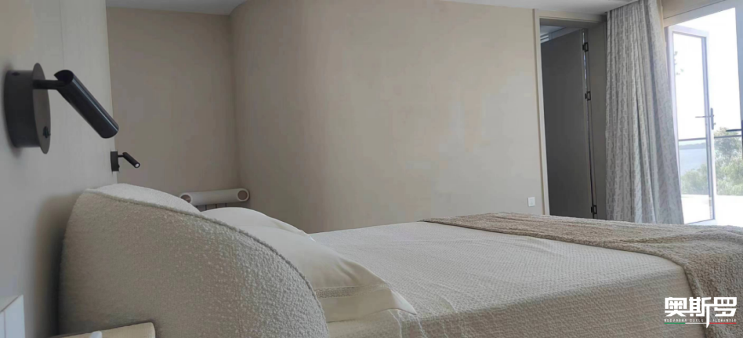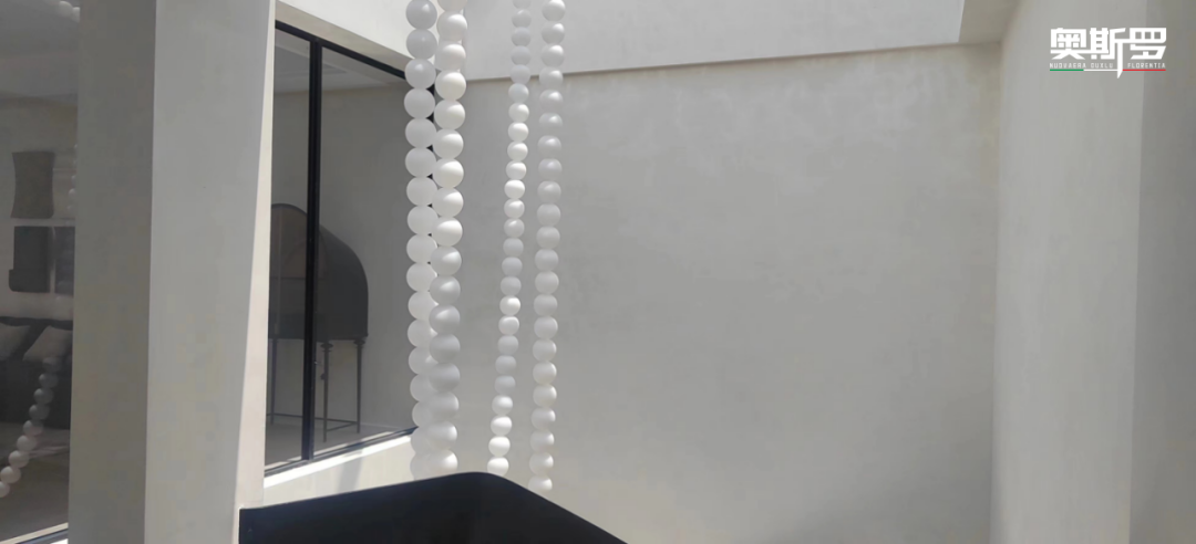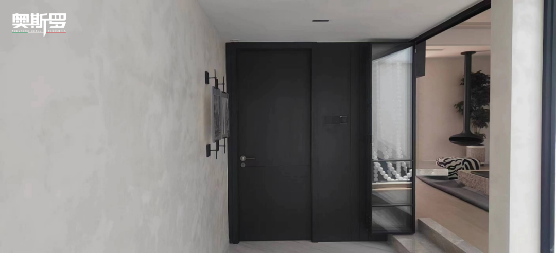 这栋别墅的质感,从来不是单一涂料的功劳,而是奥斯罗两大意大利顶级系列的默契共鸣。斯达丝绸来自奥斯罗 OUXLU(贵族系列),以细腻丝缎般的肌理,赋予公区优雅的仪式感;玛泰则来自奥斯罗 TIXE 系列,以千年石韵的呼吸质感,为卧室筑起静谧的守护墙。