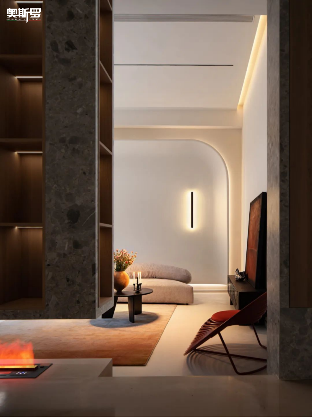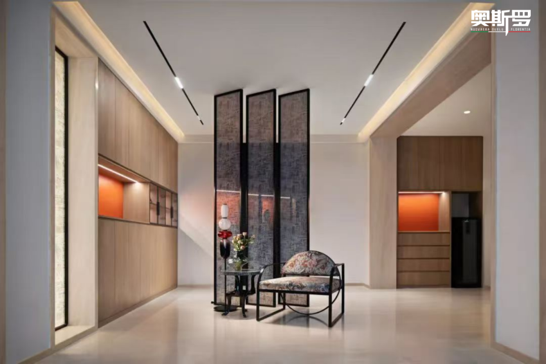 1. 玄关与过渡区:朦胧肌理里的东方意趣
