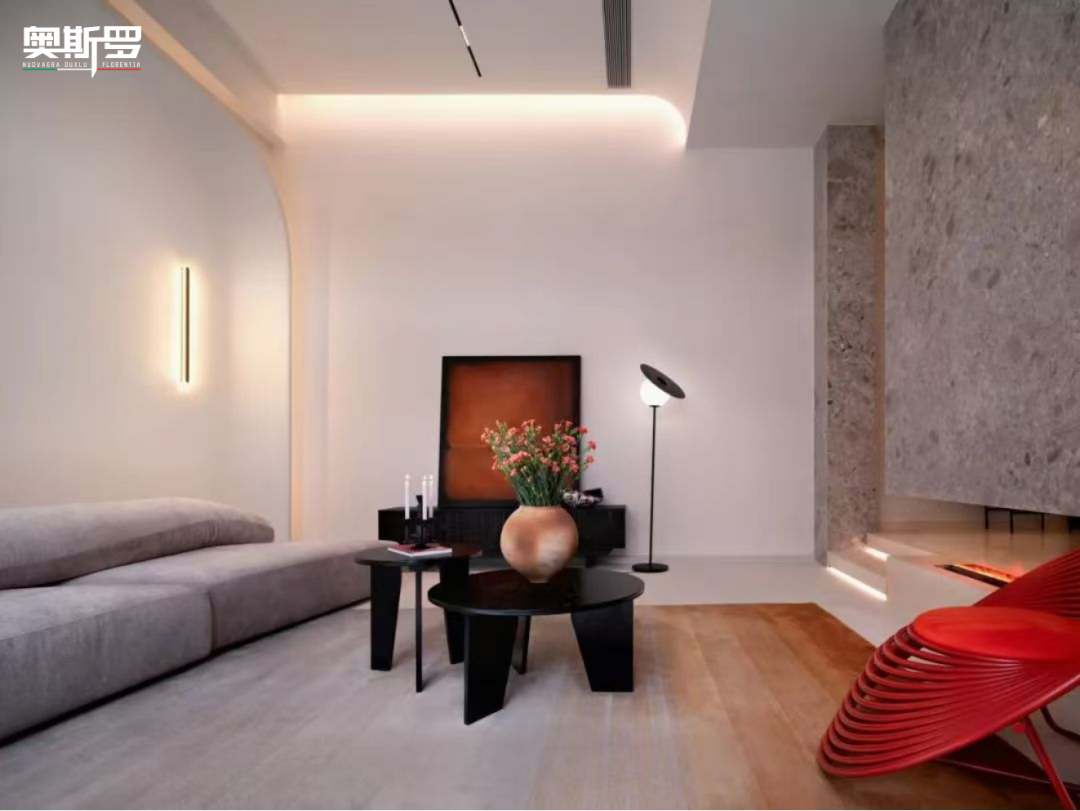 当福州的温润海风漫进这座别墅,奥斯罗福州服务中心用两种涂料,为业主量身打造的家铺就了独有的叙事底色 —— 客厅里的恒康蛋壳光与其余空间的玛泰艺术涂料,在光影流转间,诉说着当代墅居的优雅与温度。